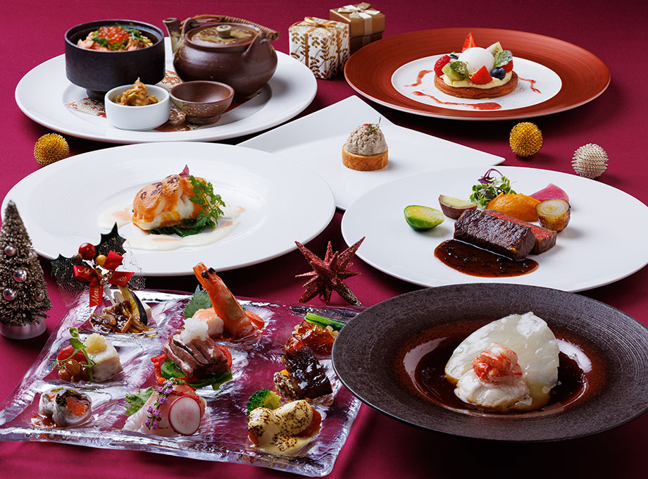 広東料理の伝統を活かした創作シノワの数々と、華麗な手さばきで仕上げる鉄板フレンチ。ここでしか味わえないクリスマスディナーコースをご用意しました。人気の窓際席確約プランには、乾杯用のシャンパンに加え、可愛らしいクリスマスプレートや華やかなケーキが付いたアニバーサリープランもございます。