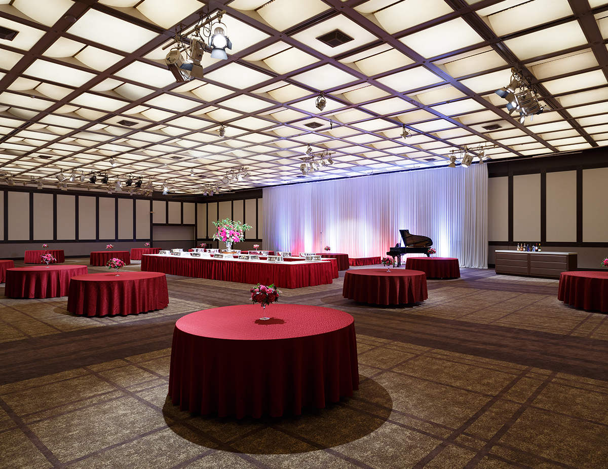 最新の音響設備・照明装置を備え、国際会議やレセプション、各種パーティまで目的・用途に合わせご利用いただける宴会場です。
